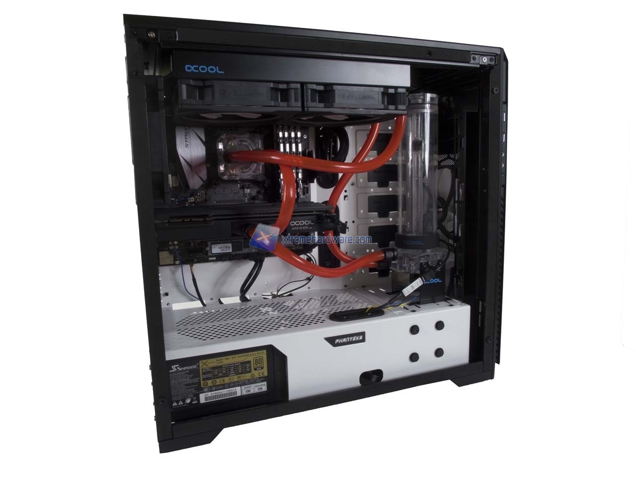 L’installazione nel Phanteks Enthoo Pro M Special Edition ha richiesto davvero poco tempo giusto il tempo di installare tutti i componenti, prendere le misure esatte dei tubi (vista la configurazione a liquido integrata) e aggiungere le ventole aggiuntive con relativi frame Phanteks Halos. I nostri componenti come sempre sono stati perfettamente collocati e senza alcun tipo di problematica durante il montaggio. Lo spazio è adeguato e i fori per dove far passare tutti i cavi sono ottimizzati bene per creare una configurazione quanto più pulita e ordinata. Nulla da dire al collaudato Enthoo Pro M.