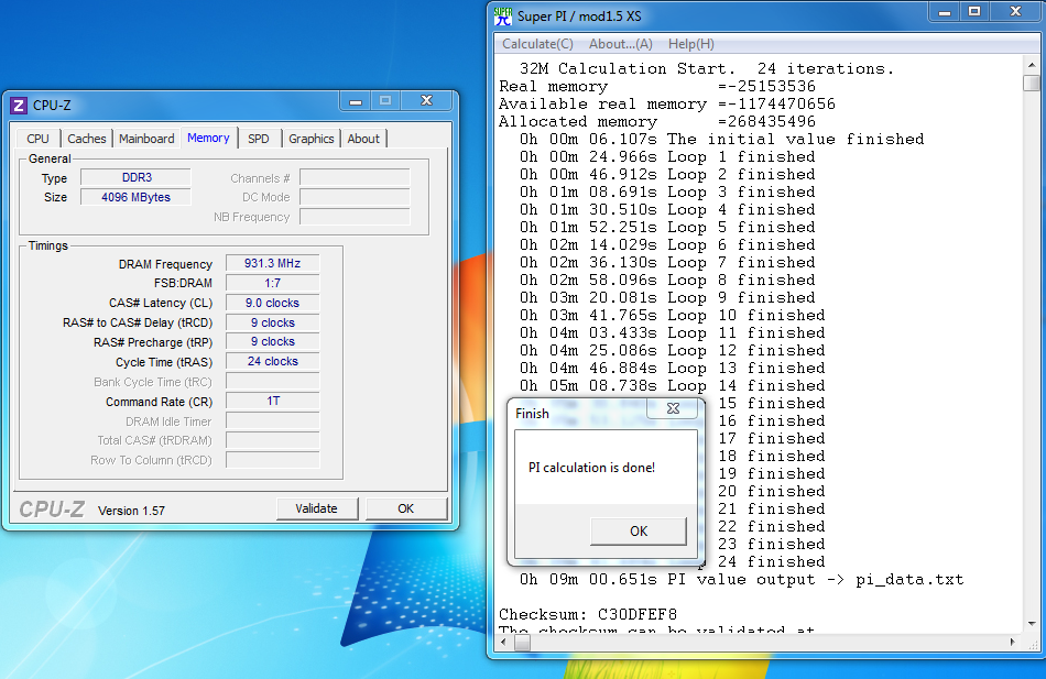 A questo punto siamo passati al divisore 18.6 (1866MHz) settando le latenze a 9-10-9-24 1t, in questo caso però abbiamo dovuto aumentare il vDIMM a 1.57v, quindi entro le specifiche consigliate dal data sheet Intel Sandy Bridge relativo al voltaggio massimo consentito per le memorie RAM, anche in questo caso non abbiamo avuto alcuna difficoltà a trovare un risultato “rock solid”; per corroborare la scelta del tool LINX, inseriamo in questa recensione anche lo score ottenuto adoperando il tool SuperPI alle latenze 9-9-9-24 1t con lo stesso vDIMM (1.57v), come si può evincere il benchmark risulta essersi concluso con successo, ma agli stessi settaggi non ci è stato possibile chiudere 10 cicli di LINX.