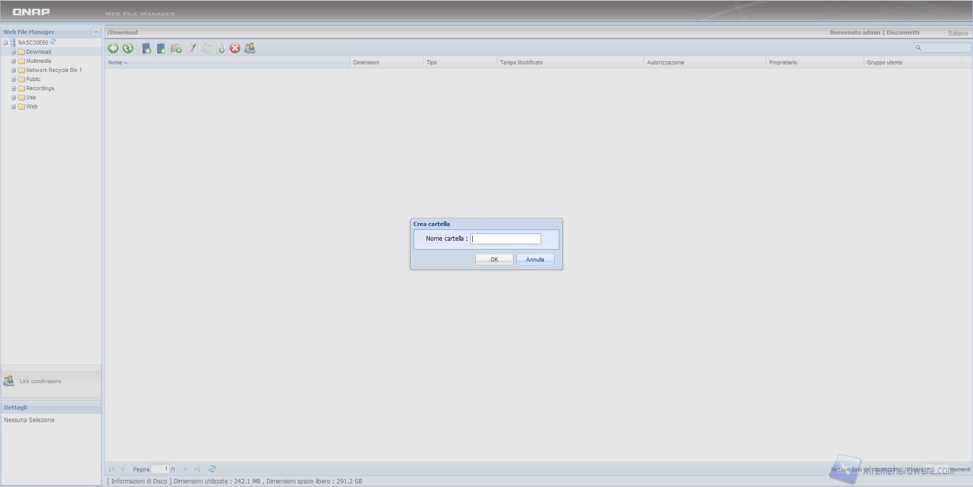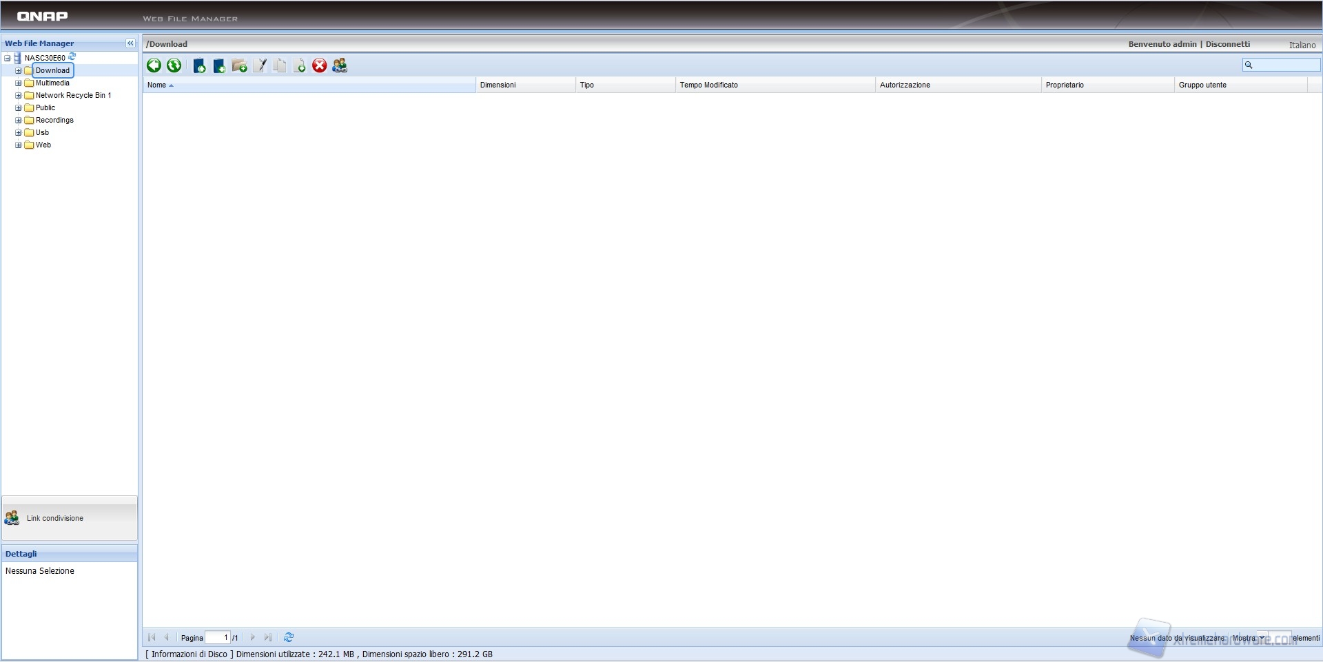 Come descritto nelle pagine precedenti, il “Web File Manager” è un servizio che permette la gestione dei file caricati all'interno del NAS direttamente tramite browser web.